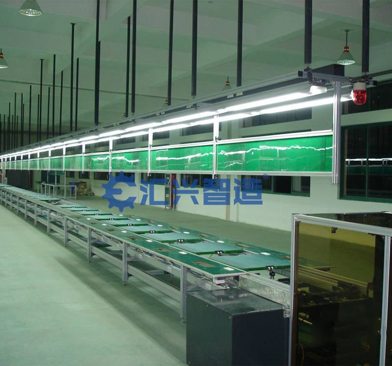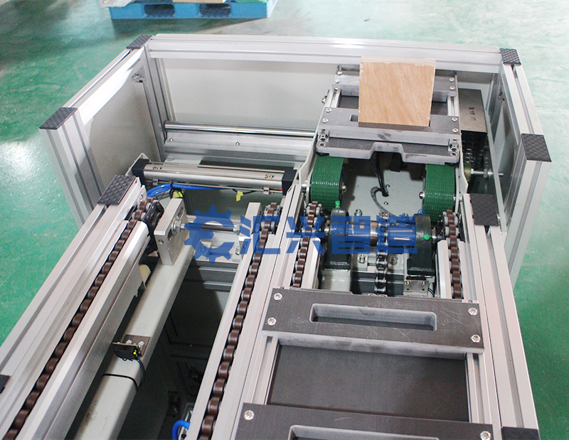 整條包裝線由:紙箱成型封底機(jī)(開箱機(jī))、封切熱收縮機(jī)、自動(dòng)裝箱機(jī)、噴碼機(jī)、折蓋封箱機(jī)、角邊封箱機(jī)、無人化打包機(jī)、棧板供給碼垛機(jī)、穿劍式打包機(jī)、水平式打包機(jī)、在線纏繞包裝機(jī)及輸送機(jī)組成。此款包裝線為匯興智造最完整成套設(shè)備,整套包裝可實(shí)現(xiàn)無人化運(yùn)行、包裝外觀整潔、穩(wěn)固。開箱機(jī)完成吸箱、開箱、膠帶封底,輸送到積放滾筒輸送機(jī),阻擋器阻擋紙箱。