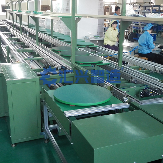 POS機裝配線,是指工件以一定的速率連續(xù)、均勻地通過一系列裝配工作站,按照一定要求在各裝配工作站完成相應裝配工作的生產(chǎn)線。匯興智造裝配線是人和機器的有效組合,最充分體現(xiàn)設備的靈活性,將輸送系統(tǒng)、隨行夾具和在線專機、檢測設備有機的組合,以滿足多品種產(chǎn)品的裝配要求。裝配流水線的傳輸方式有同步傳輸?shù)?(強制式)也可以是非同步傳輸/(柔性式),根據(jù)配置的選擇,實現(xiàn)手工裝配或半自動裝配。裝配線在企業(yè)的批量生產(chǎn)中不可或缺。