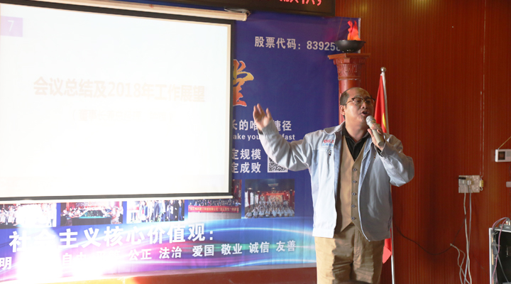 大會的最后一個議程是匯興智造鐘輝董事長作會議總結(jié)及2018年工作展望。鐘輝董事長說道:“我們報喜不藏憂,變化不變心。2017年,匯興智造喜事不斷:入選東莞市倍增計劃試點(diǎn)企業(yè);成立東莞市院士工作站;進(jìn)入新三板創(chuàng)新層;獲批了35畝企業(yè)用地;市重大項(xiàng)目補(bǔ)助落實(shí);德國子公司建立;在國際科技合作周活動中,承辦的德國館和論壇萬眾矚目,省長、各部級領(lǐng)導(dǎo)、院士大加贊賞;申報了廣東省成長型企業(yè);戰(zhàn)略性新興產(chǎn)業(yè)骨干(培育)企業(yè)評審?fù)ㄟ^;銀行授信額度增大;知識產(chǎn)權(quán)貫標(biāo);業(yè)績倍增,納稅1000多萬,成為大嶺山鎮(zhèn)納稅大戶。雖然我們?nèi)〉昧撕玫某煽儯@得了好的聲譽(yù),但我們不能藏憂,人才建設(shè)的加強(qiáng);管理制度的完善;銷售業(yè)績的增長;訂單的消化;收款流程的優(yōu)化;各部門溝通協(xié)調(diào)的加強(qiáng)等等,我們還有很多問題需要解決?!埲招?,日日新,又日新’,生活從不眷顧因循守舊、滿足現(xiàn)狀者。我們要變化,有了變化,才有進(jìn)步。我們的車間變得更規(guī)范,辦公區(qū)域變得更漂亮;供應(yīng)商變得更優(yōu)質(zhì);我們提供給客戶的產(chǎn)品和服務(wù)變得更豐富;客戶群體變得更高端。但是不管怎么變,任爾東西南北風(fēng),在即將到來的2018年,我們?nèi)匀粓允爻跣?,牢記使命,砥礪前行?!?nbsp;