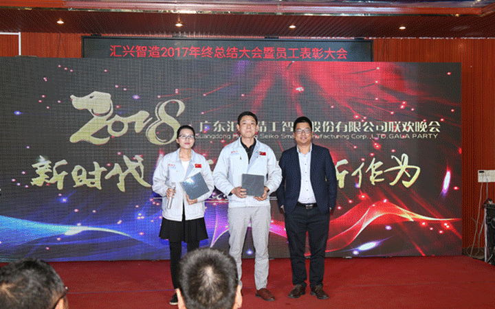 東莞證券何總、大信會計事務(wù)所黃總、華商律師事務(wù)所姜總等嘉賓致辭,均表示在2017年與匯興智造合作得相當(dāng)愉快,同賀匯興智造取得驕人成績,并表達(dá)了在2018與匯興智造繼續(xù)合作的愿望,共祝匯興智造再創(chuàng)輝煌。
