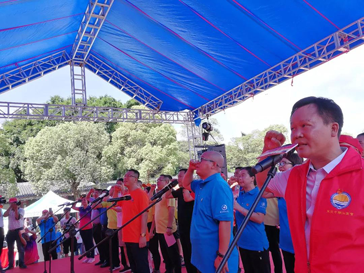 活動(dòng)開(kāi)端, 在東莞市江西商會(huì)黨支部書(shū)記、匯興智造董事長(zhǎng)鐘輝等商協(xié)會(huì)黨支部負(fù)責(zé)人帶領(lǐng)下,近千名黨員共同重溫入黨誓詞。