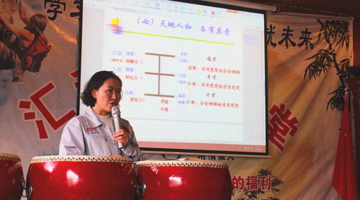 全體員工宣導(dǎo)企業(yè)理念,并向企業(yè)“商道、孝道、人道”行三鞠躬