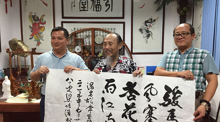 7月28日晚22點(diǎn),興國(guó)縣委常委副縣長(zhǎng)溫巖松,方太鄉(xiāng)黨委書(shū)記江華,水利局局長(zhǎng)王捷等一行七人蒞臨我司指導(dǎo),秋風(fēng)塞上比擬著溫副縣長(zhǎng)的遠(yuǎn)程走訪,像春雨滋養(yǎng)著大地,匯利興集團(tuán)(現(xiàn)更名:廣東匯興精工智造股份有限公司,簡(jiǎn)稱(chēng):匯興智造)董事長(zhǎng)鐘輝陪同,邂逅到訪的嶺南畫(huà)派泰斗梁培浩教授,并與梁老進(jìn)行深刻的藝術(shù)交流。