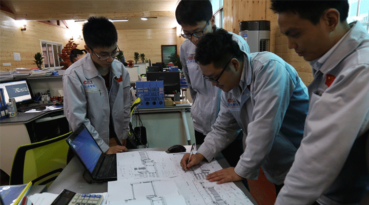設(shè)備生產(chǎn)部同事對設(shè)備做最后的檢測和調(diào)試