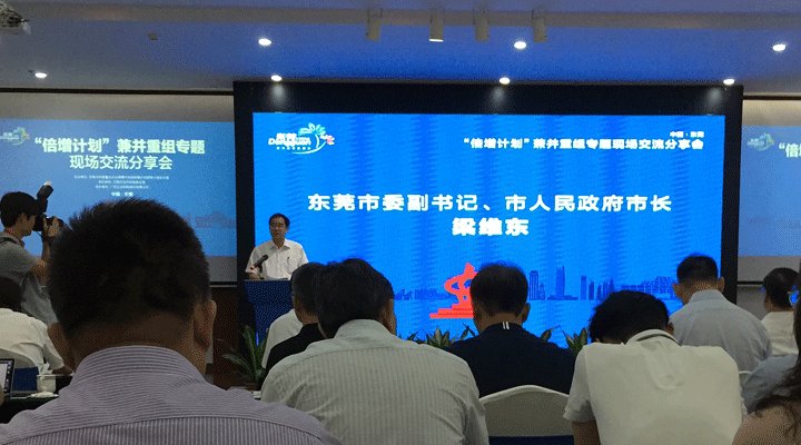 2017年6月6日,東莞市舉行“倍增計(jì)劃”試點(diǎn)企業(yè)集約化發(fā)展交流分享現(xiàn)場會(huì),首場圍繞兼并重組專題分享經(jīng)驗(yàn)、展開交流,引導(dǎo)企業(yè)深化對“倍增計(jì)劃”的理解,通過集約化發(fā)展實(shí)現(xiàn)規(guī)模與效益倍增。