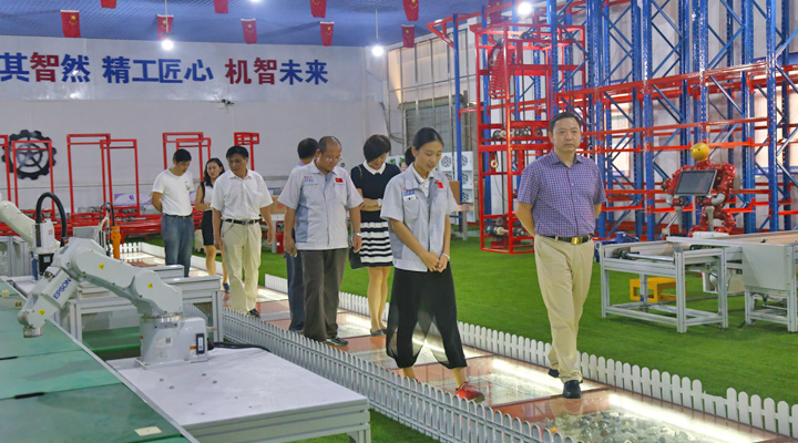楊副院長一行在董事長鐘輝的陪同下參觀了企業(yè)的智能生產(chǎn)線演示、匯興精工智造工業(yè)4.0體驗(yàn)館、工程研發(fā)部信息化組等部門,雙方表示今后要加強(qiáng)對接,細(xì)化合作內(nèi)容,創(chuàng)造更多的社會價(jià)值。在參觀過程中,董事長鐘輝向一行成員介紹了公司的發(fā)展歷程、經(jīng)營業(yè)務(wù)及取得成就,他表示作為掛牌上市公司,始終重視企業(yè)內(nèi)部的人才培養(yǎng)和技術(shù)革新,需要校企之間密切合作,并在不同的專業(yè)和領(lǐng)域搭建多種平臺,促進(jìn)校企間的優(yōu)勢互補(bǔ)和良性互動(dòng)。