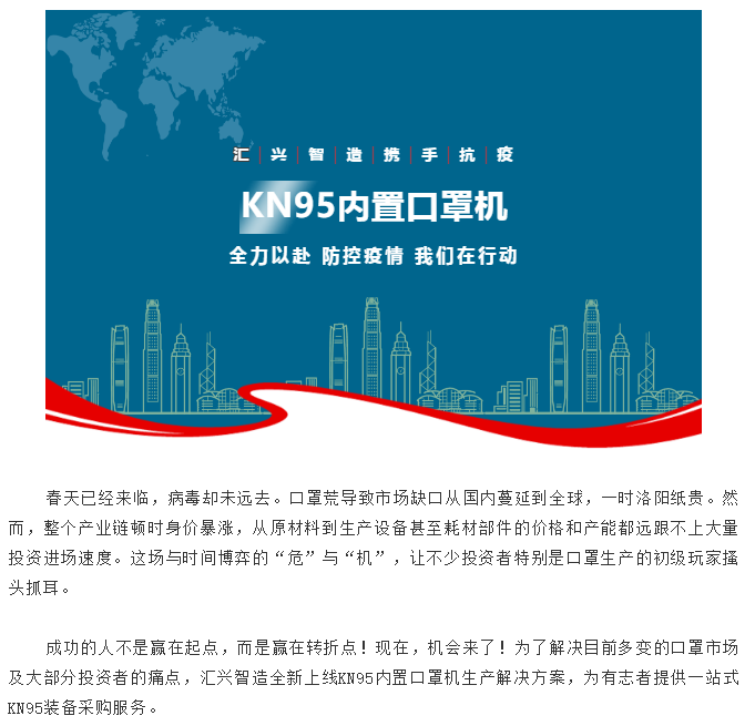 重磅!匯興智造KN95內(nèi)置口罩機(jī)正式上線,方便調(diào)試,穩(wěn)定高效!
